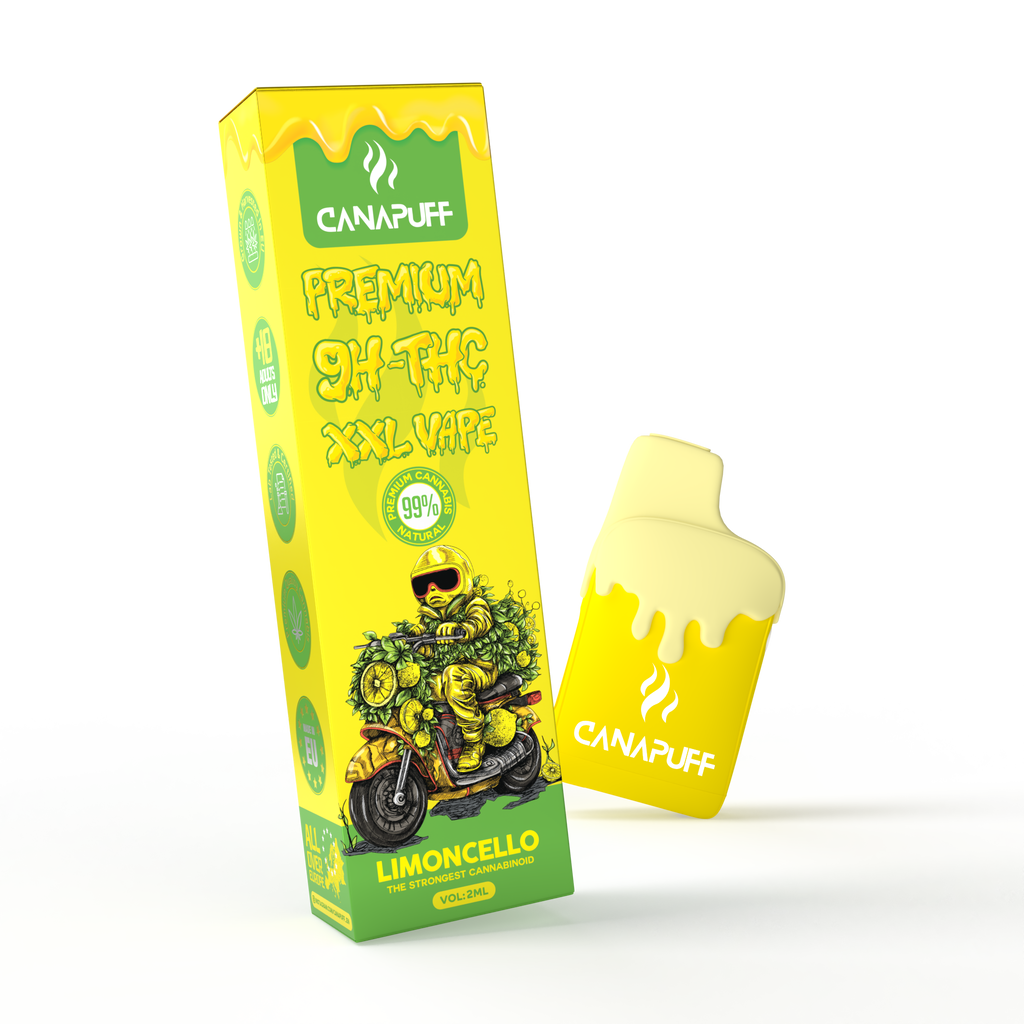 Der 9H-THC XXL Vape Limoncello mit 99% Gehalt kommt im Premium Einweg-Format mit großzügigen 2 ml Fassungsvermögen. Diese moderne XXL-Version vereint ein Advanced Cannabinoidprofil mit einem frischen, zitrusbetonten Aroma und einem eleganten High-Design – besonders attraktiv für Sammler und Fans feiner Dufterlebnisse.