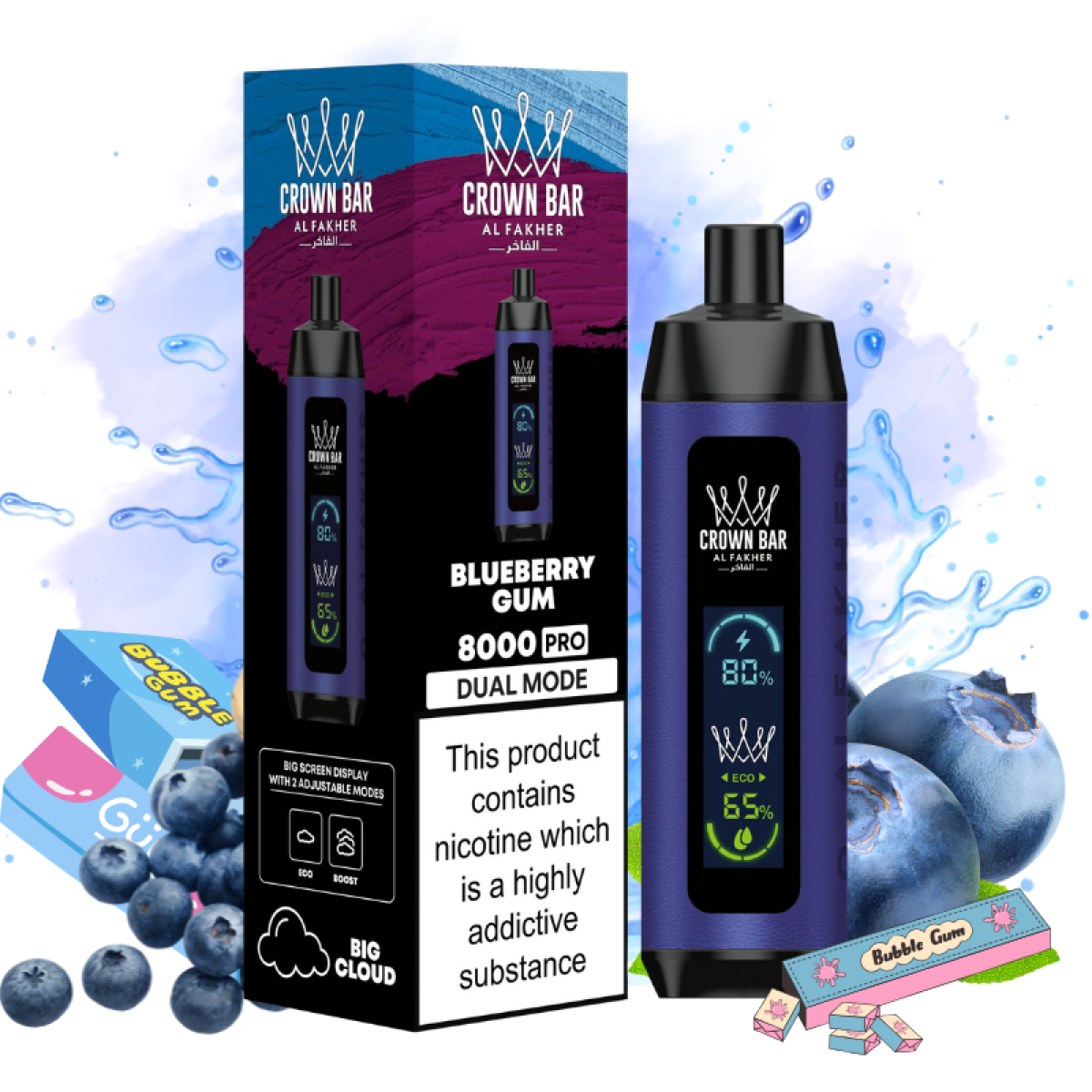 Genießen Sie die perfekte Mischung aus saftigen Blaubeeren und zähem Kaugummi mit dem Al Fakher Blueberry Gum Geschmack. Gönnen Sie sich bis zu 8.000 puffs von süßem und erfrischendem Geschmack, perfekt für jeden Anlass.