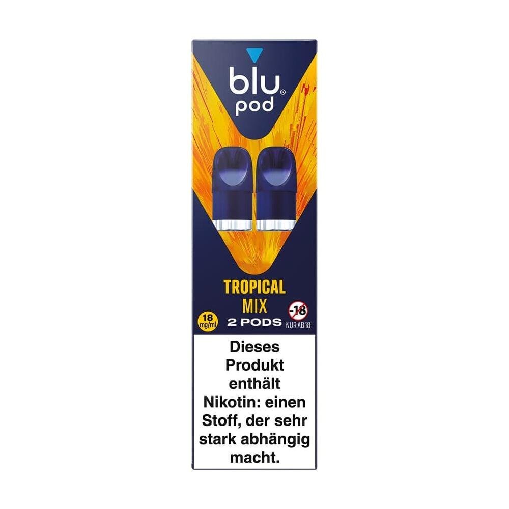 blu Pods Tropical Mix (2 ml, 18 mg/ml) – tropisch-fruchtiger Geschmack im 2er Set. Passend für dein blu Bar Kit. Jetzt online bestellen bei dampftbeidir!