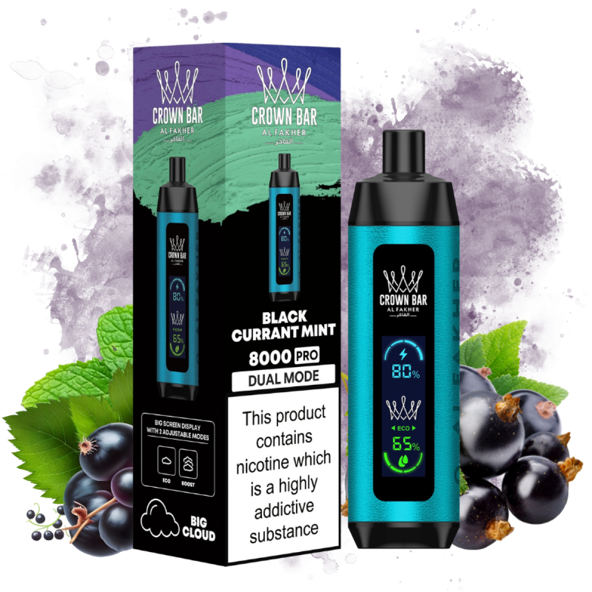 Genießen Sie den kräftigen Geschmack von süßen Schwarzen Johannisbeeren mit einem kühlenden minzigen Abgang im Crown Bar Black Currant Mint Vape. Freuen Sie sich auf bis zu 8.000 puffs erfrischender fruchtiger Köstlichkeit bei jedem Zug.