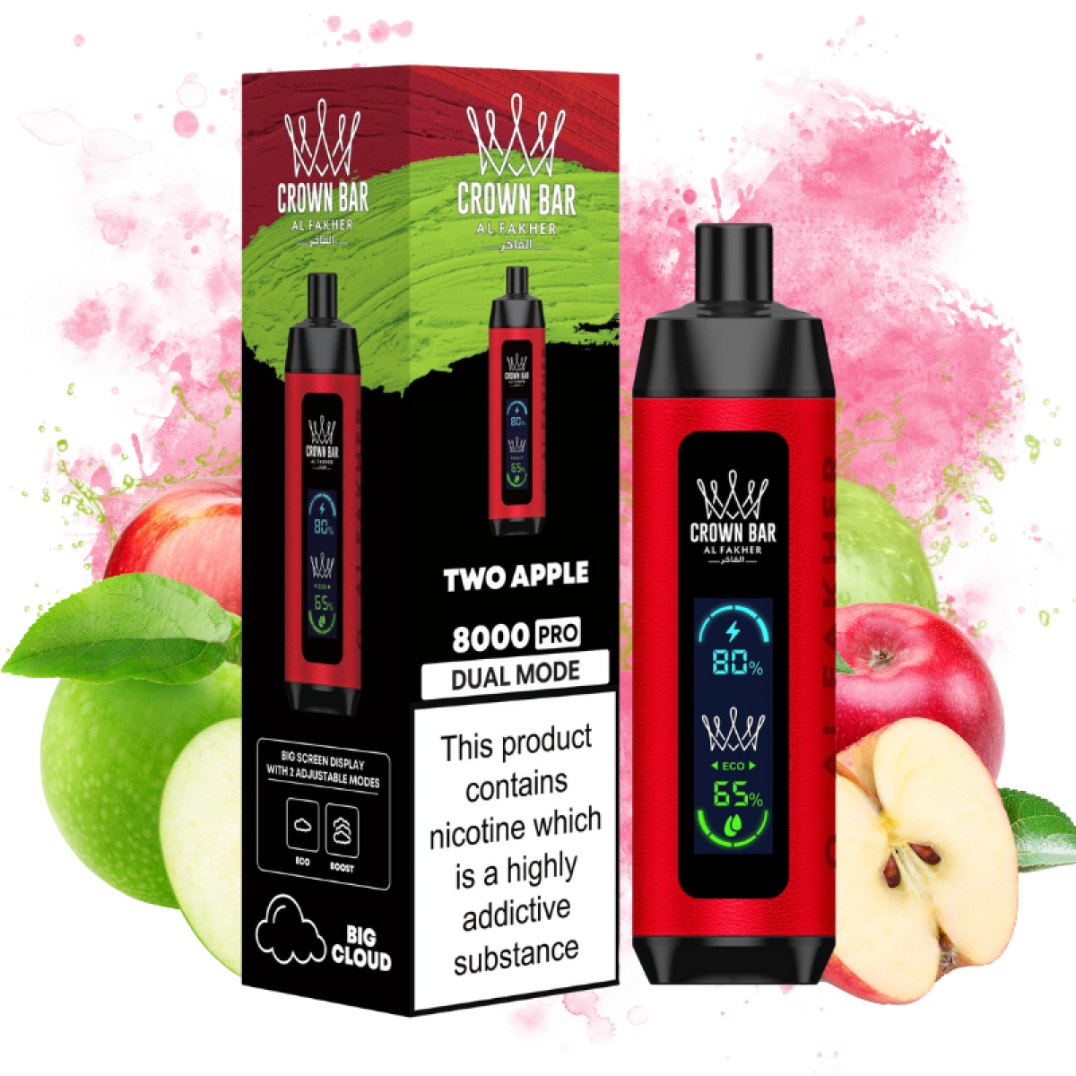 Erleben Sie die erfrischende Mischung aus süßen roten Äpfeln und sauren grünen Äpfeln mit der Crown Bar Double Apple Geschmack. Genießen Sie bis zu 8.000 puffs von knackigem, fruchtigem Genuss bei jedem Zug.