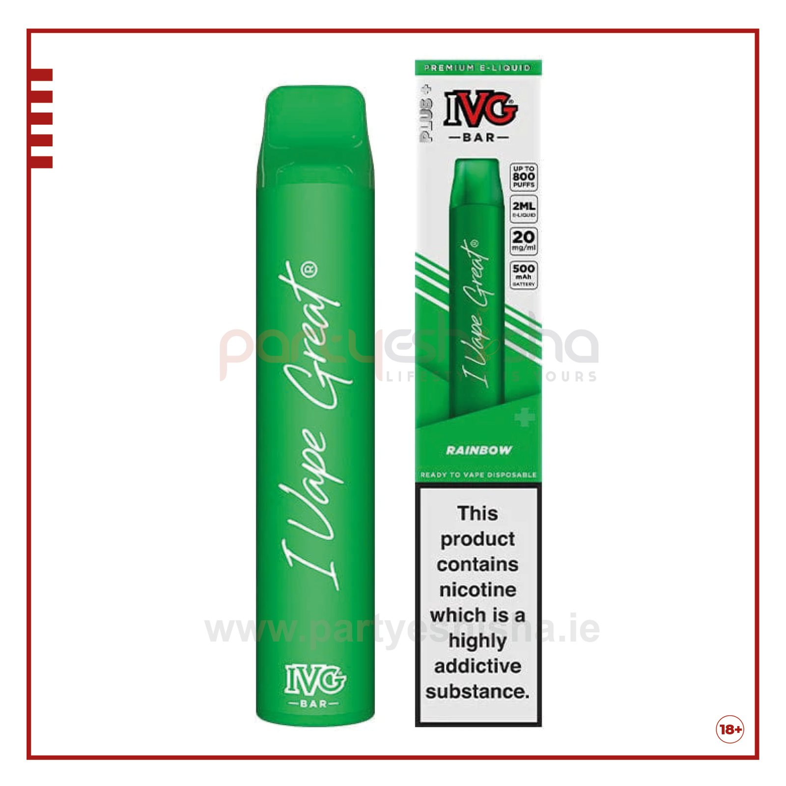 The IVG BAR PLUS Disposable Vape Device can vape up to 800 puffs in up to 22 flavours. Updated cylindrical shape with new rubber grip technology and a new ergonomic food grade mouth piece for a more comfortable experience.